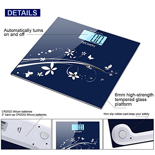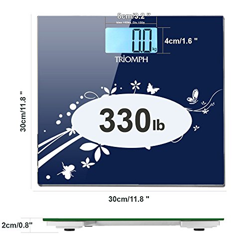 -. Title : Triomph High Accuracy Premium Digital Electronic Bathroom Weight Scale with 6mm Tempered Glass, 330lb Capacity, Automatic Step On,Advanced Step-On Technology, Large LCD Backlight Display