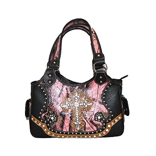 -. Brand : Texas West -. Color : Pink/Black -. Department : womens -. EAN : 0637813526436 -. Feature : Rhinestone Camo Cross Women's Handbags in Large Cross Design 8604 / Handbag Size: 14" x 10" x 5" wallet size: 7.5" x 5" x 1.5" / Weight: handbag 2.7lbs and wallet 1lbs / high quality leather handbag and wallet with detailed design, Same business day handling and shipping / Durable Made. Same business day handling with fast shipping. -. Model : 8604 -. ProductGroup : Shoes -. ProductTypeName : HANDBAG -. Size : Large -. Title : Rhinestone Camouflage Cross handbag purse. -. UPC : 637813526436