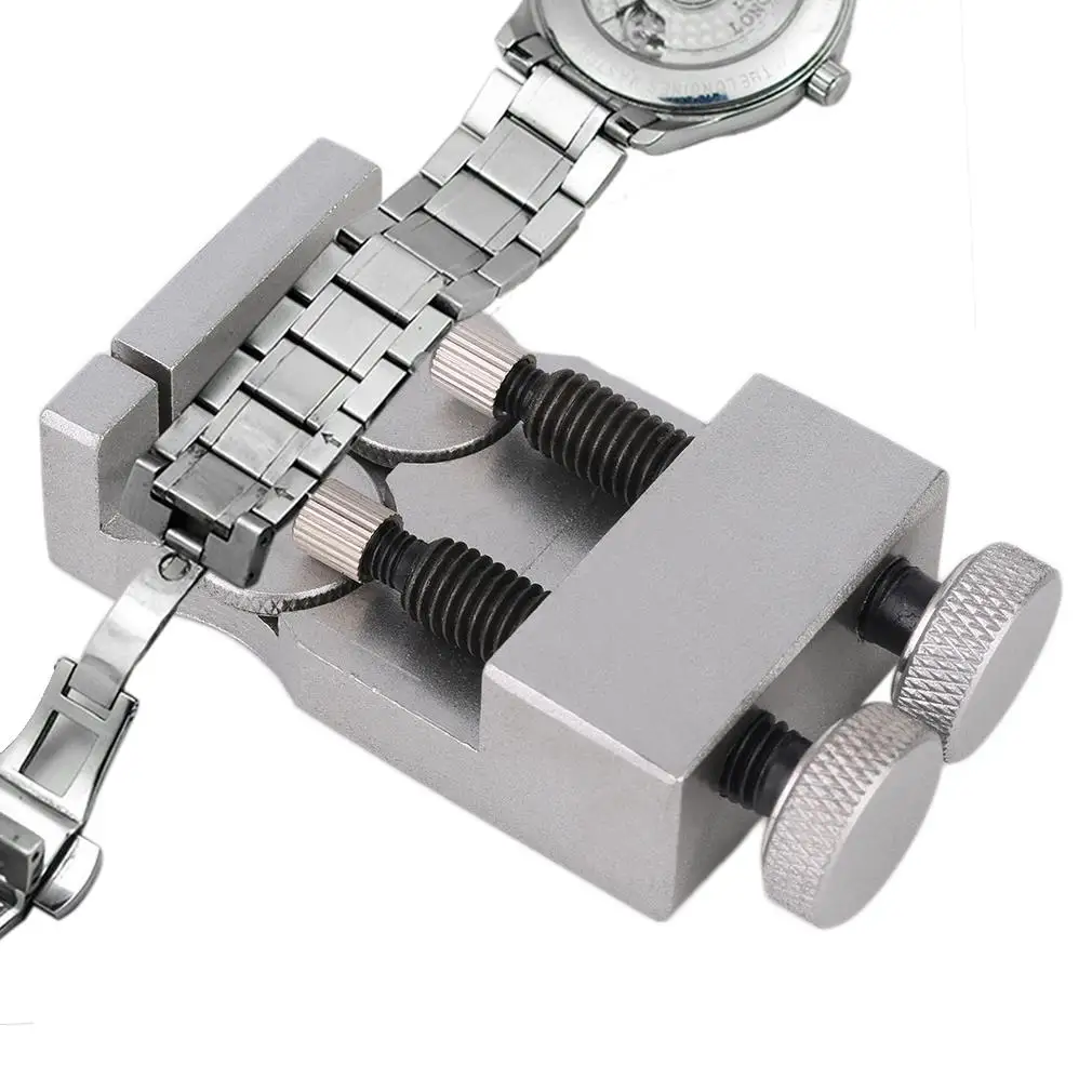 더블 걸쇠 금속 스틸 시계 팔찌 솔리드 조정 테이블 손목 시계 링크 핀 리무버 스트랩 조정 수리 도구 실버