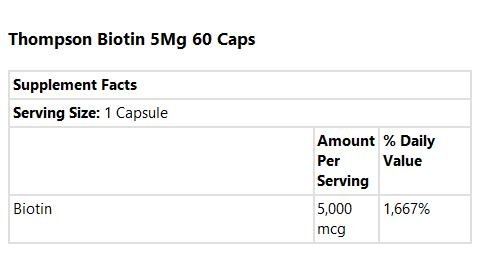 -. Title : Thompson Biotin Capsules, High Potency, 5000 Mcg, 60 Count