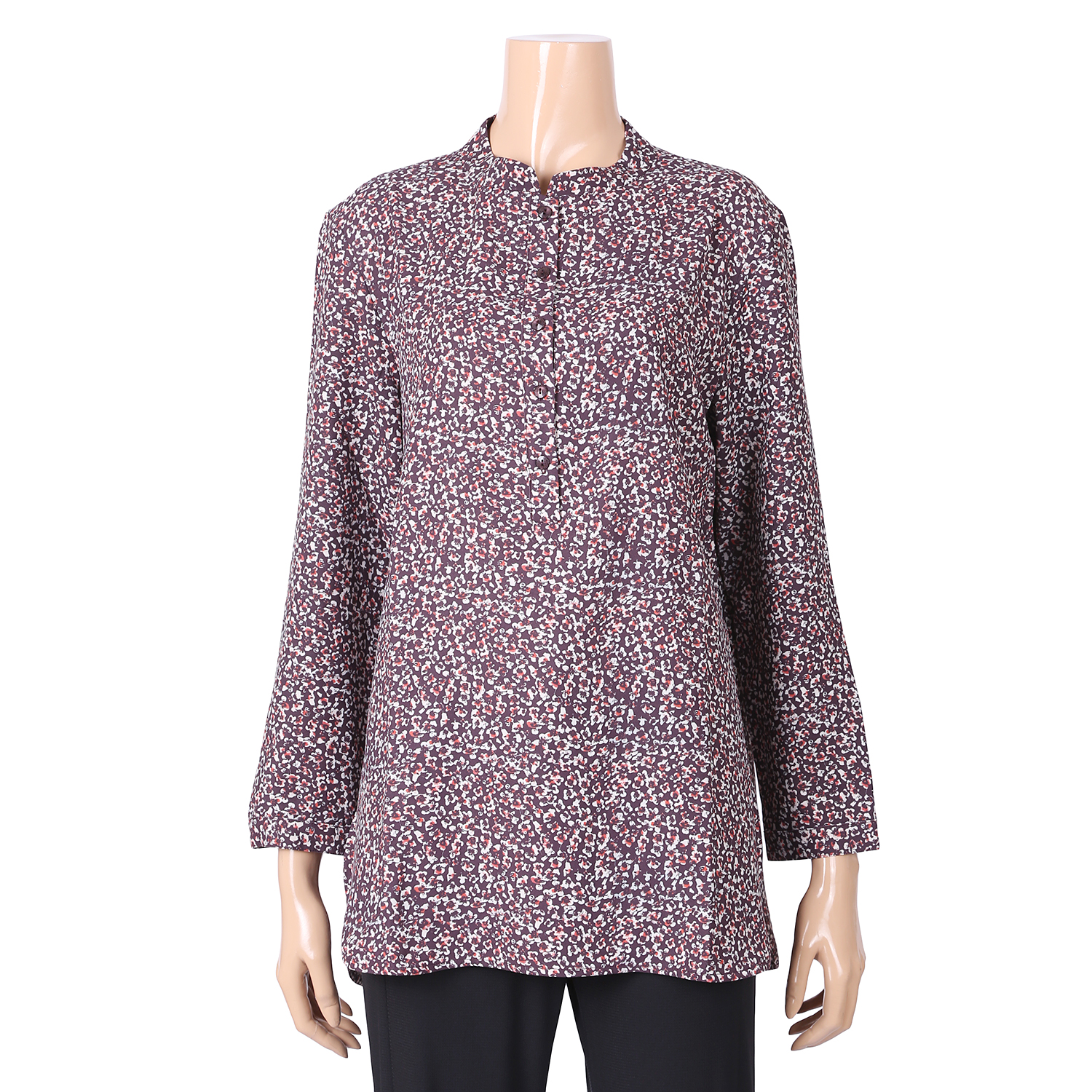 이 제품은 단아하고정갈한 미니차이나의 쉬폰 프린트블라우스 입니다