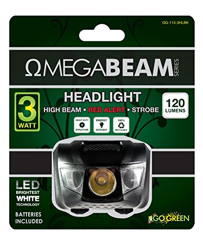 Go Green Power GG-113-3HLBK 3W LED HeadLight - 3 Modes Strobe Included - Black,