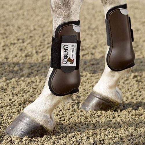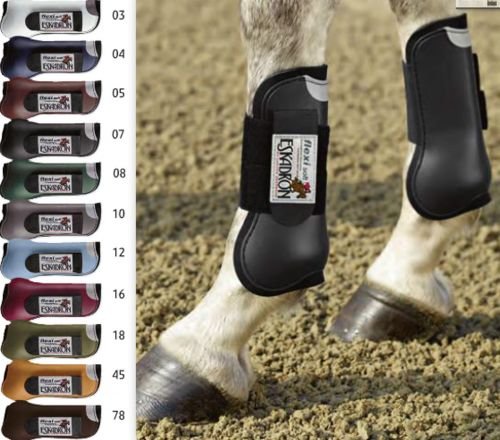 Studio : Eskadron Publisher : Eskadron Binding : Misc. Product Description An open front tendon boot anatomically adapted to the horses leg, made of TPE with neopren-lining and with a practical velcro fastening. This horse boot is hard yet lightweight providing protection and comfort for your horse's legs. The soft and flexible area ensures the optimum freedom of movement. Available in the sizes Full and Pony in the colors white, navy, brown, black, dark green, grey, light blue, dark red, mud, cognac and choco . Text by CALEVO. 0