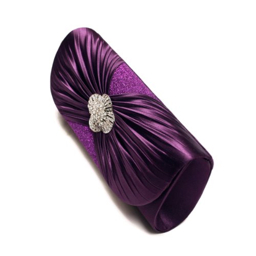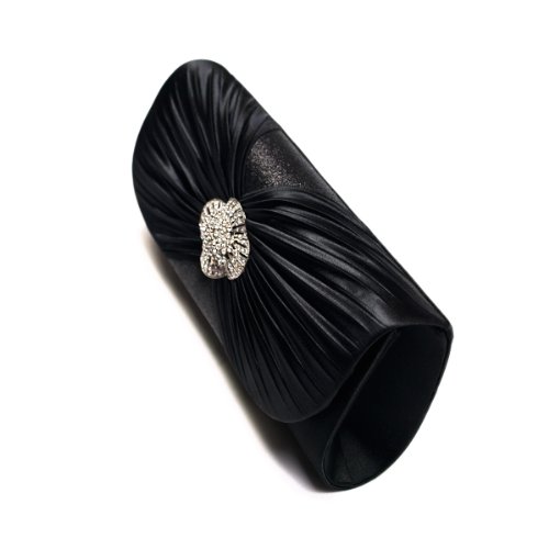 -. Title : Elegant Cross Pleated Satin Flap Crystal Clutch Evening Bag - Diff Colors Avail