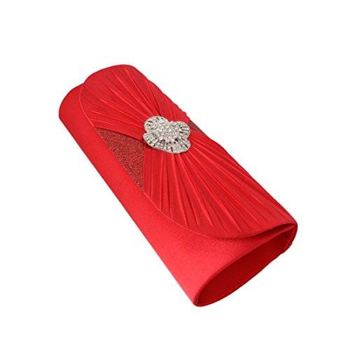 -. Feature : Elegant satin fabric clutch evening bag with sparkling rhinestones / Fabric lining. Magnetic-flap closure. Interior wall pocket. / Removable hideaway shoulder chain strap with 22" drop / 10.25" (L) x 4" (H) x 2" (W) / High quality with different vibrant colors available