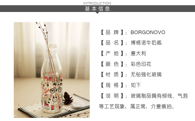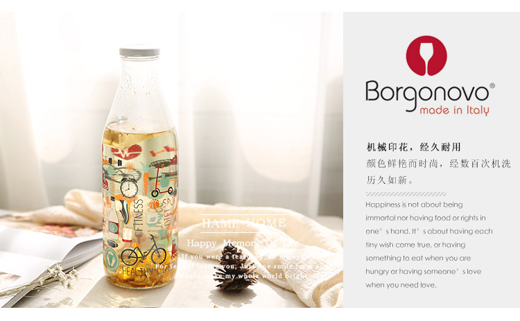 进口博格诺生活本色玻璃水瓶玻璃壶冷水壶凉水壶果汁壶水壶欧式1L