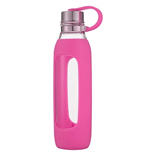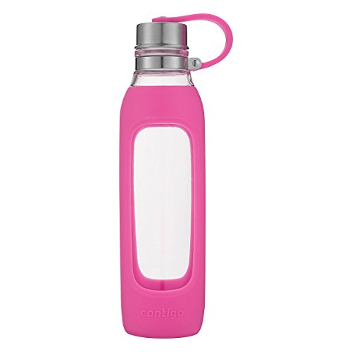 Contigo Purity Glass Water Bottle with Silicone Tethered Lid, 20oz, Very Berry
