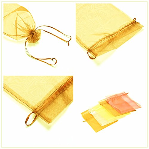 10pcs Wine Bottle & Wine Organza Favor Gift Bags Gold 14 x 37CM