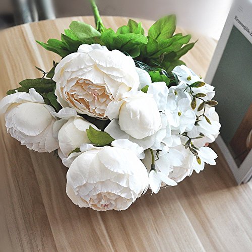 -Abundant Consistent The whole bouquet has abundant parts with 13 stems, 6 flowers, 2 buds, 3 series aquatic parts and 2 series hydrangea bubbles. If you want to have a beautiful table arrangement, you can decorate with more than 2 bouquets. br>