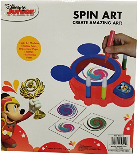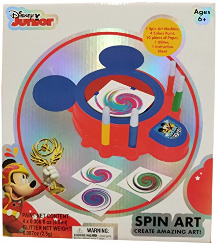 Studio : Disney Publisher : Disney Binding : Toy Product Description The Disney Junior Mickey Mouse Spin Art set comes with 1 spin art machine, 4 colors of paind, 10 pieces of paper, a glitter, and an instruction sheet to teach you how to use it. This toy can be lots of fun for the creative child. 0