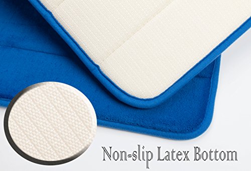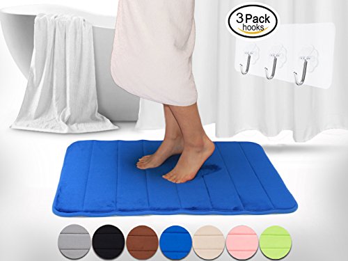 Yimobra Luxurious Memory Foam Bathroom Mat Large 31.5 X 19.8 Inch, Absorbency ,Soft ,Microfiber,Non Slip ,Bath Rugs Blue with Wall Hooks 3 Pack
