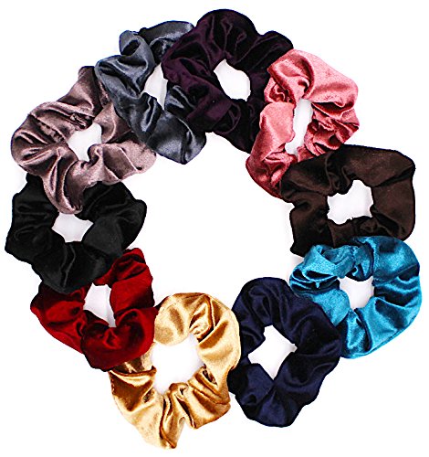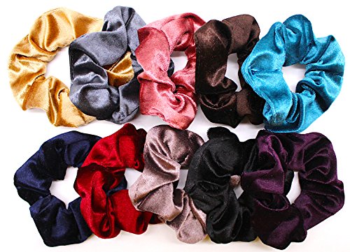 Solace Velvet Hair Scrunchies | Soft Elastic Hair Ties | 10 Pack | Variety Set of Bobbles | Hair Bands for Women In a Pack of 10 Colors
