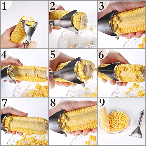 Corn Peeler, Newness Premium Corn Peeler Thresher, 304 Food Grade Stainless Steel Corn Cob Stripper Kernel Cutter Tool for Home & Kitchen with Sharp Serrated Blade