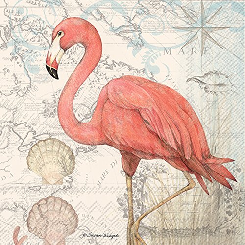 - Susan Winget design features flamingo on background with map and ocean themed accents