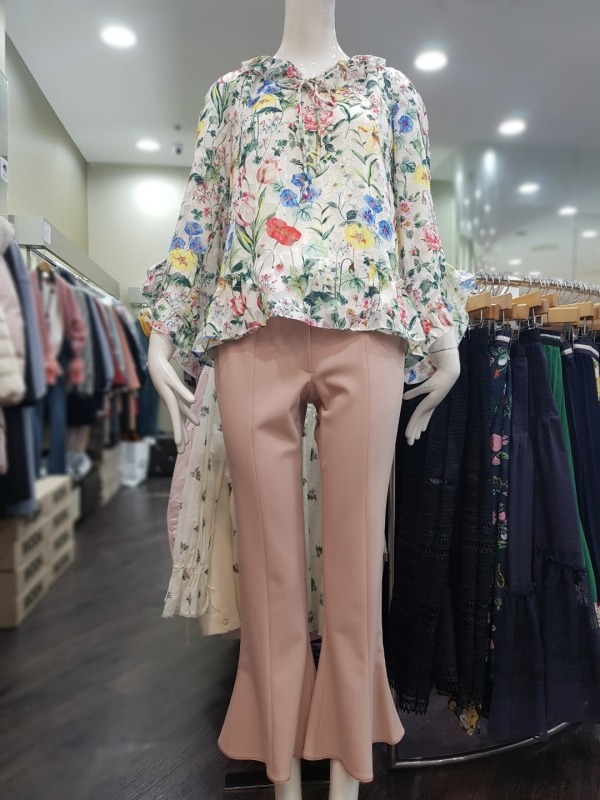 총장 87cm 세미 나팔 팬츠로 솔리드한 컬러감이 돋보이며신축성이 좋아 활동하기 좋습니다.