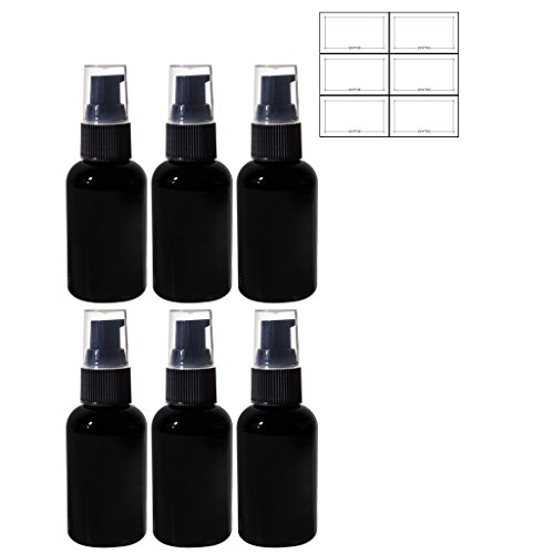 Black 2 oz Boston Round PET (BPA Free) Bottle with Treatment Pump (6 pack) + Labels