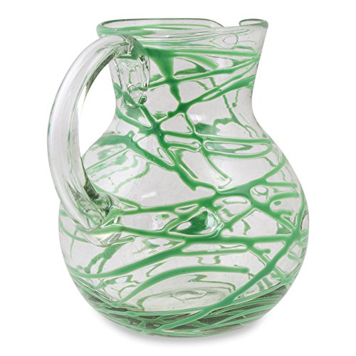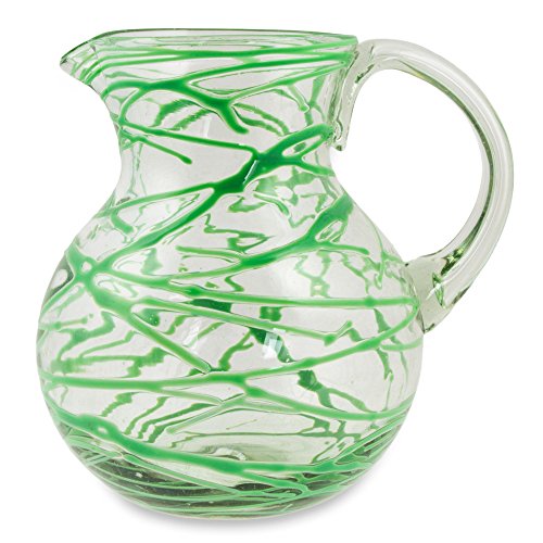 NOVICA Hand Blown Green Glass Pitcher, 84 oz. 'Emerald Swirl'