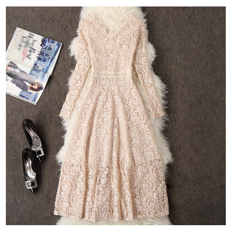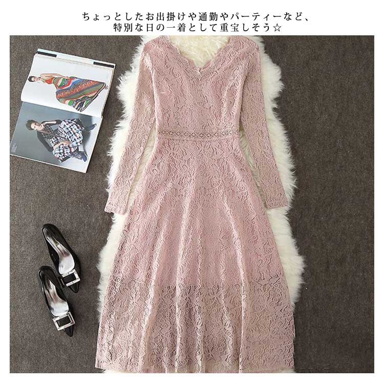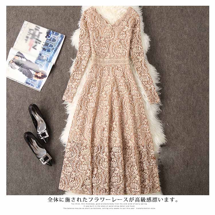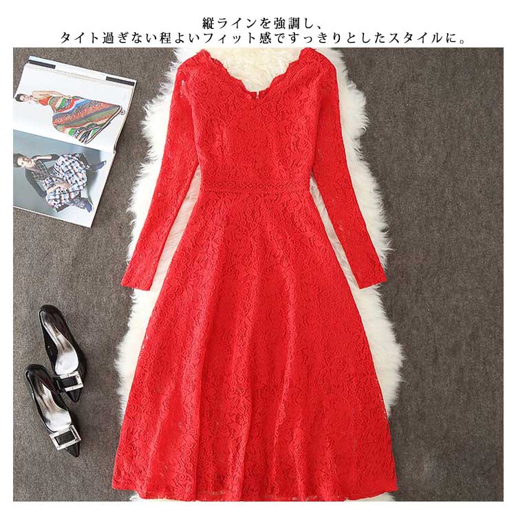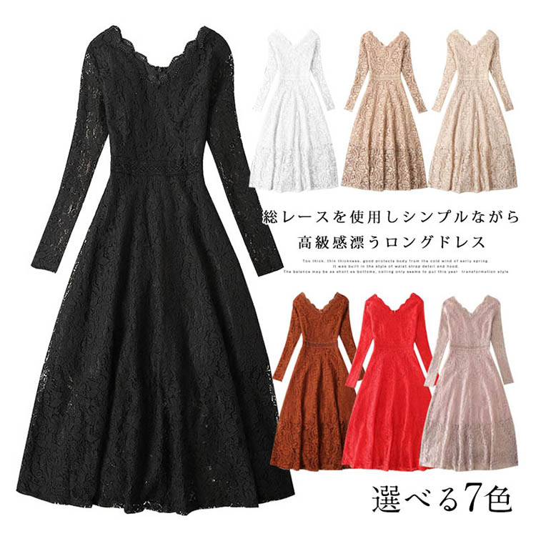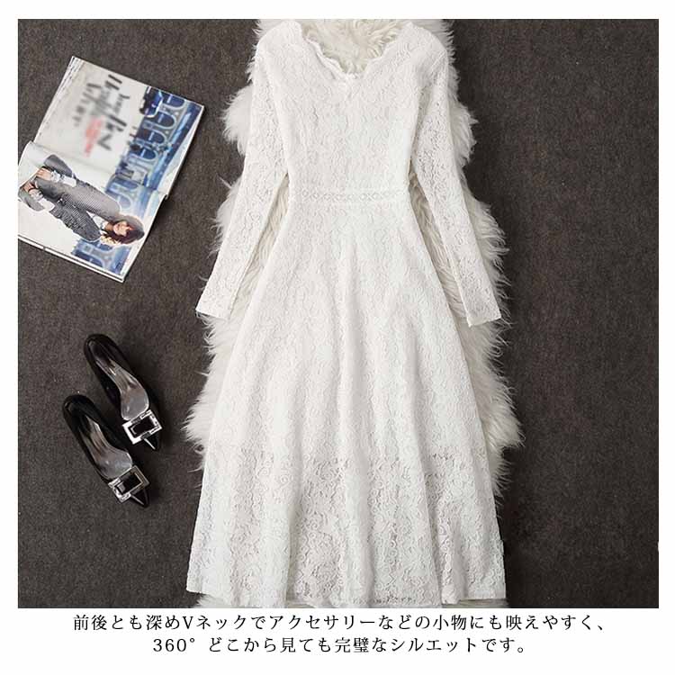 | 総レースを使用しシンプルながら高級感漂うロングドレス。フロントはもちろんのこと、バックスタイルにまで気を使える。前後とも深めVネックでアクセサリーなどの小物にも映えやすく、360°どこから見ても完璧なシルエットです。全体に施されたフラワーレースが高級感漂います。縦ラインを強調し、タイト過ぎない程よいフィット感ですっきりとしたスタイルに。ちょっとしたお出掛けや通勤やパーティーなど、特別な日の一着として重宝しそう☆ | |