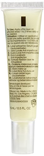 Studio : Murad Publisher : Murad Binding : Health and Beauty Product Description Murad's Blemish Spot Treatment is a powerful formula that contains Sulfur and Salicylic Acid to minimise the severity of current acne breakouts and deliver on-the-spot acne control the moment you feel a blemish developing.Zinc Oxide soothes and reduces inflammation.Salicylic Acid exfoliates to accelerate healing.Licorice Extract and Allantoin, powerful anti-inflammatory ingredients, help to reduce inflammation.Hydrolized Oat Flour helps to minimise dryness and flaking.Oxysomes (a powerful blend of Vitamins C and E) to help protect and restore skin health.Ideal for: Acne. 0