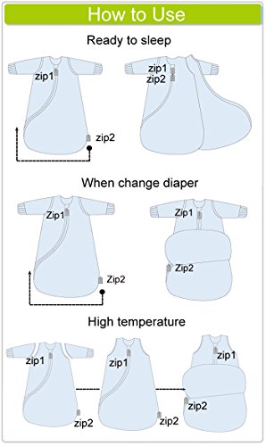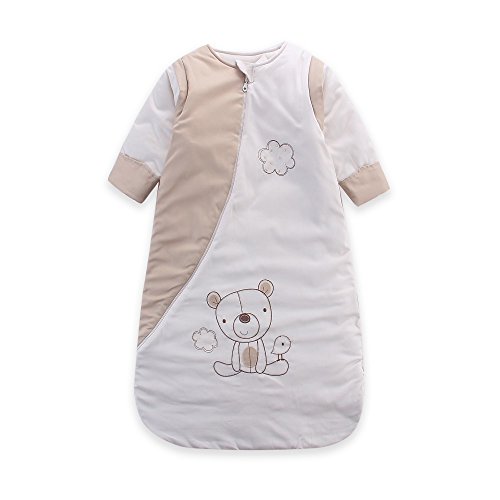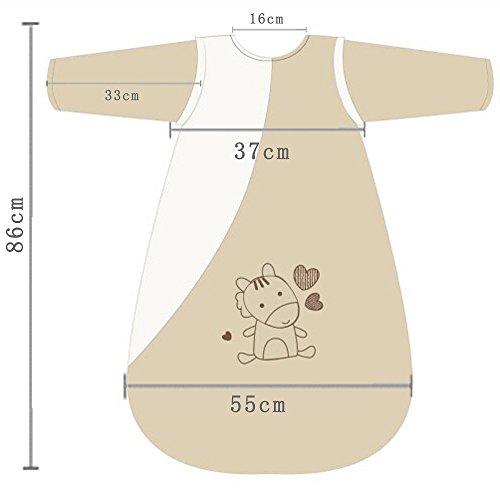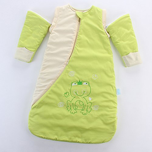 -. Feature : Outer/Lining: 100% cotton, Padding: 100% soft polyester fleece, easy care - machine wash at 100 F° and low heat tumble dry; / Long sleeves are removeable, Parents can remove it according to the weather. The sleeping bag is suitable for fall and winter. / Oversized high quality reverse zipper, easy for wearing and changing pad; / With embroided cartoon animal pattern on sleeping bag, have 6 different designs for your options: / Single packed in a hanbag, makes it's a great gift.