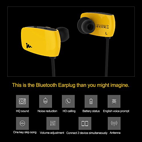 Wild-U, Wireless Bluetooth Earphones Hand-free Noise Isolation In-ear Headset with Microphone for Sports/Driving/Running/Gym Compatible with all Smart-phones Ipad and PC etc with Bluetooth (Yellow)