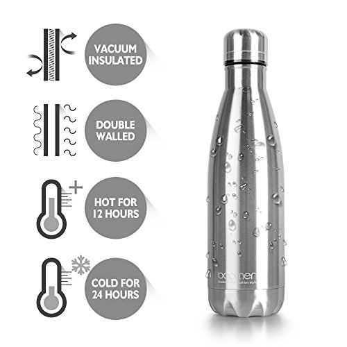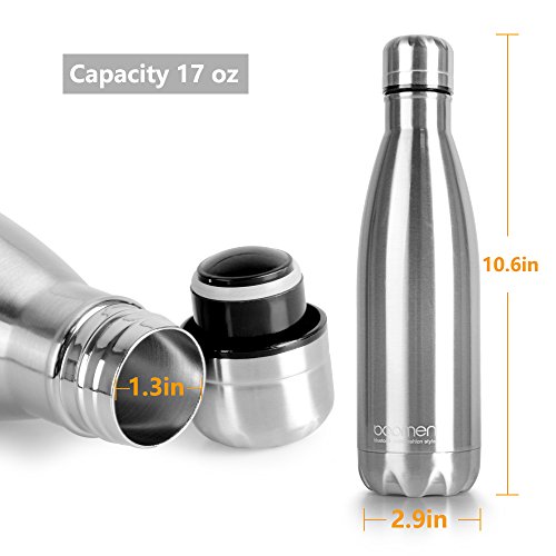 Bopmen Vacuum Insulated Sweatproof Water Bottle 17oz,100% BPA Free,Keeps Cold 24 Hours or Hot 12 Hours Double Walled Stainless Steel Cola Shaped Outdoor Sport Vacuum Flask for Camping Hiking Cycling