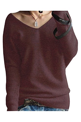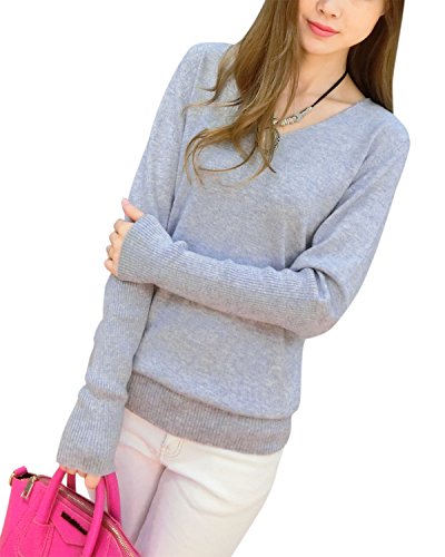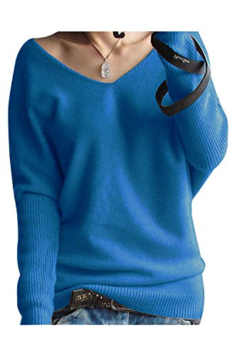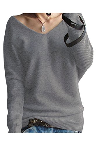 Liny Xin Women's Loose Batwing Sleeve Big V-Neck Pullover Cashmere Wool Sweater