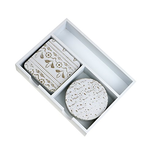 LovenCity Wooden Square Stereoscopic Pattern Design Coasters,Ideal for Home and Bar, Set of 6
