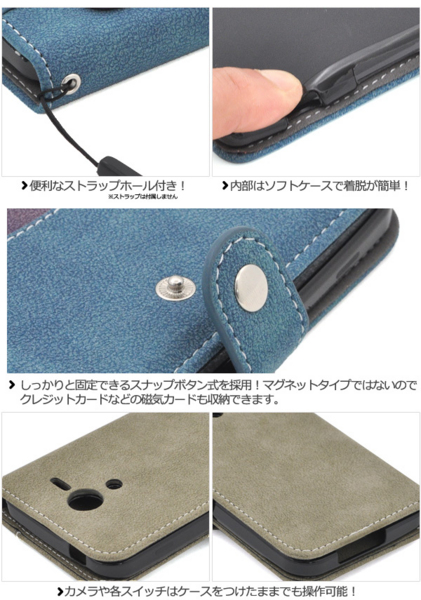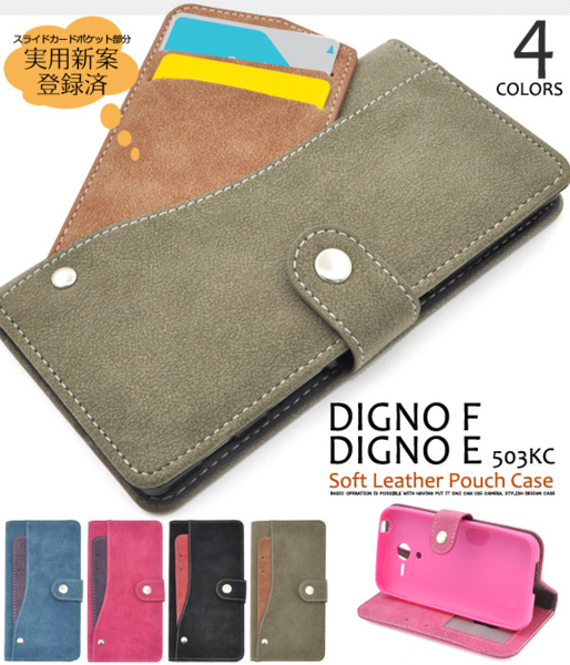 DIGNO F/DIGNO E(503KC)用スライドカードポケットソフトレザーケース。