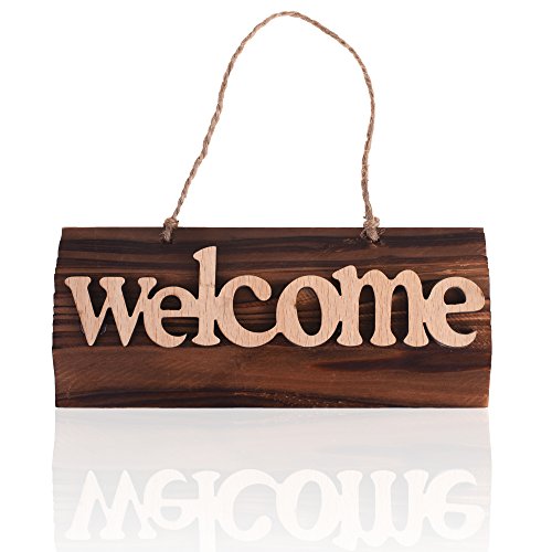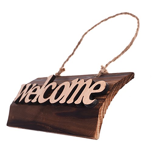 COSMOS Wooden Welcome Sign Plaque Decorative Hanging Sign Board for Bar Cafe Store Shop Door Window