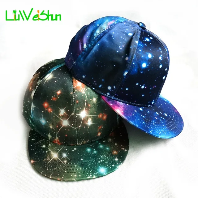 | [해외][LWS] 인쇄 별이 빛나는 하늘 힙합 커플 야구 모자 스트레이트 바이저 남성 여성 거리 스냅 백 모자 야외 뼈 Gorras |
