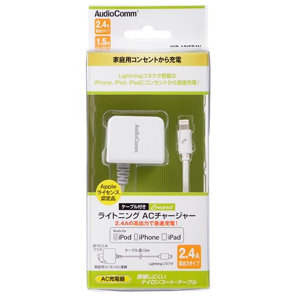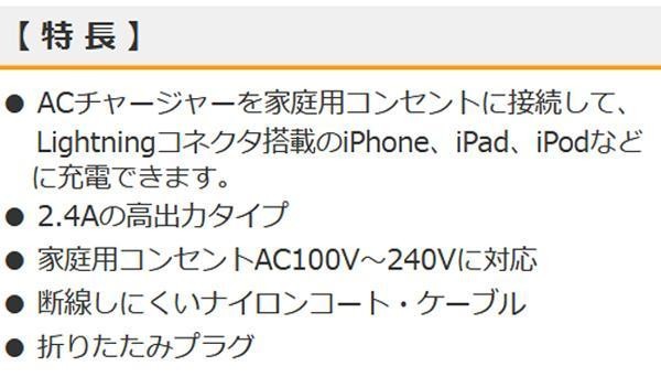 fk094igrjsLightningコネクタ搭載のiPhone、iPad、iPodなどを充電できます サイズ 個装サイズ:8×18×4cm 重量 個装重量:300g 製造国 中国 家庭用コンセントに接続できるACチャージャー Lightningコネクタ搭載のiPhone、iPad、iPodなどを充電できます