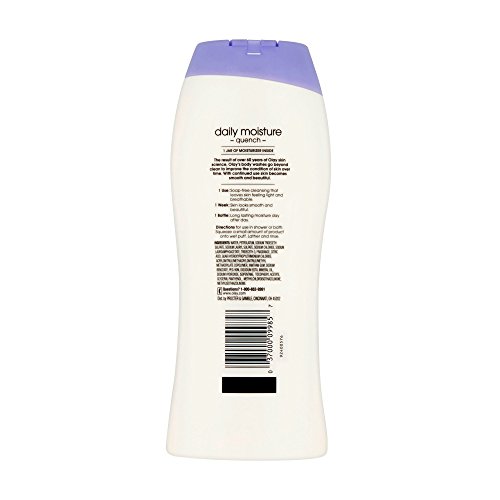 Skin looking dull and feeling dry? Replenish your skins moisture with continued use of Olay Daily Moisture Quench Body Wash! With more than one jar of Olay moisturizers in every bottle, Olay Daily Moisture Quench goes beyond cleansing to visibly replenish moisture after just one usewith continued use, skin becomes even more smooth and beautiful. Give your thirsty skin the quenching moisture of Olay Daily Moisture Quench Body Wash, and see what a difference it can make. After 1 Use: Soap-free cleansing leaves skin feeling light and breathable; 1 Week: Skin looks smooth and beautiful; 1 Bottle: Long-lasting moisture day after day.Feature