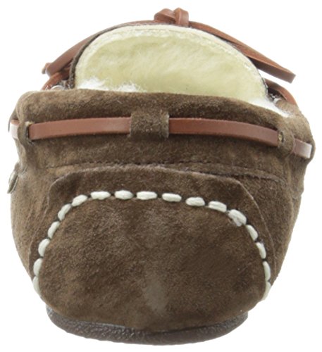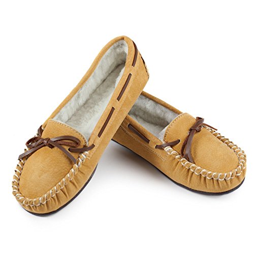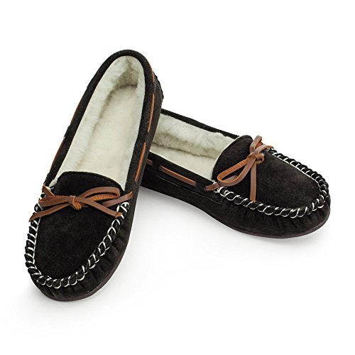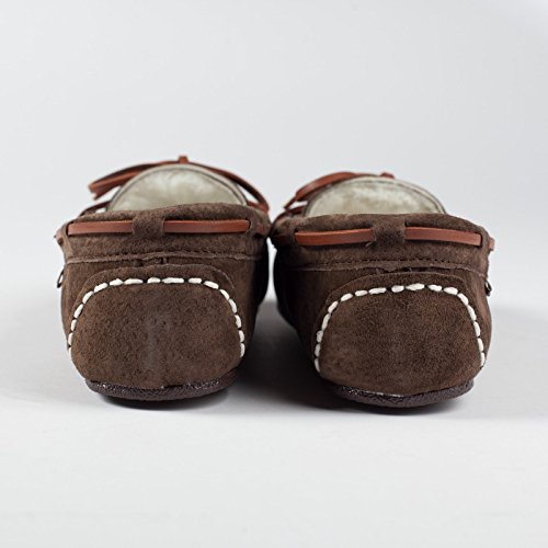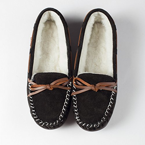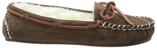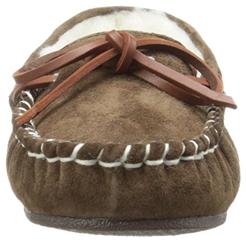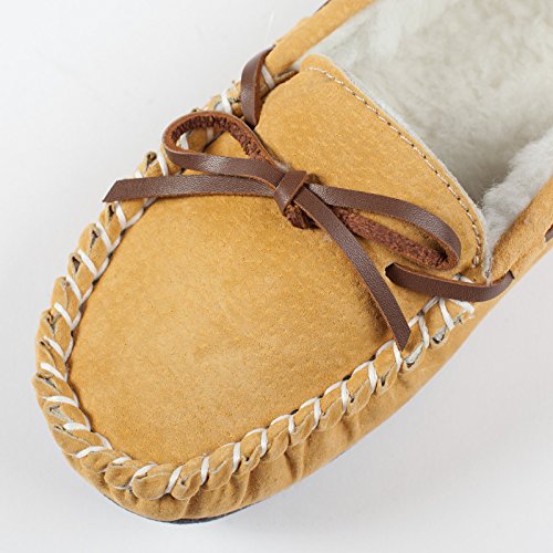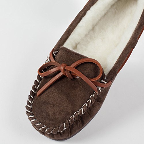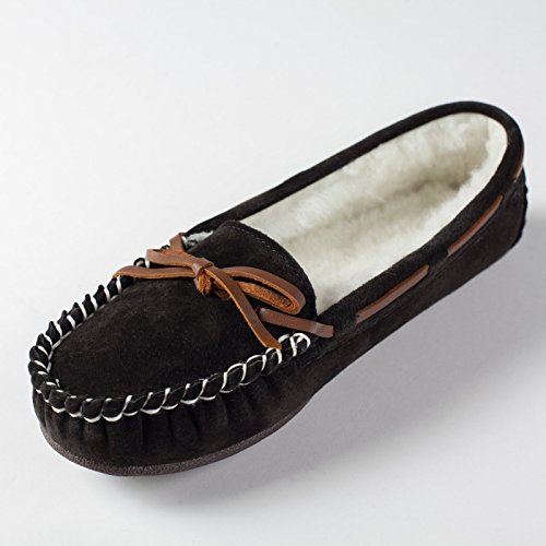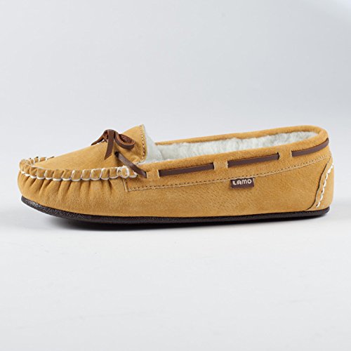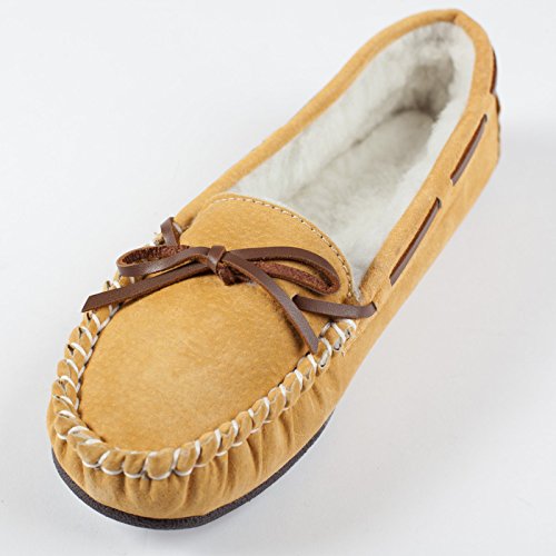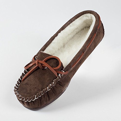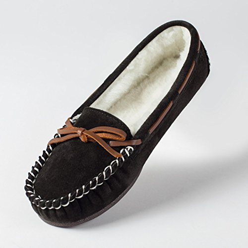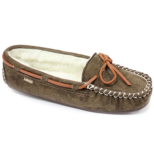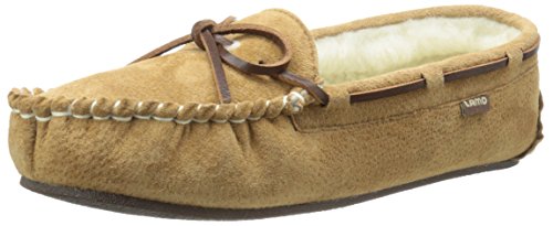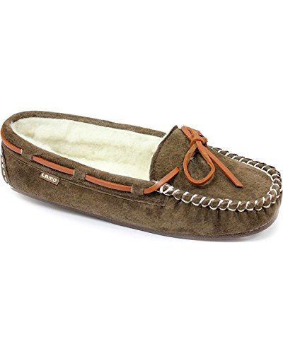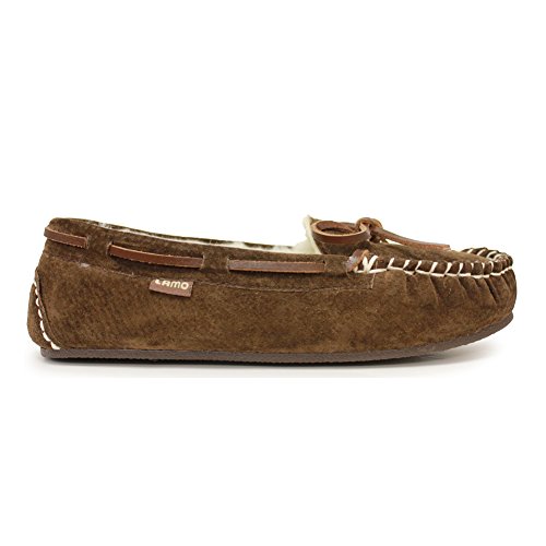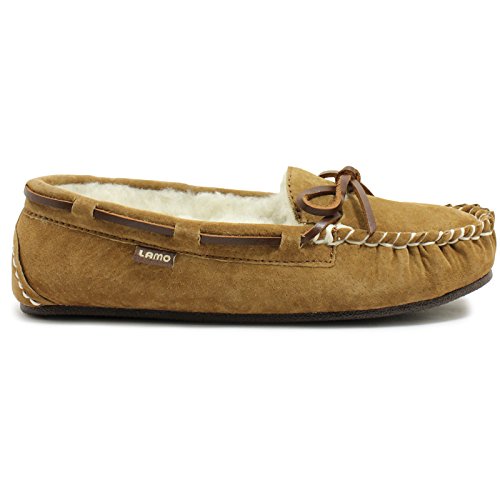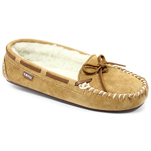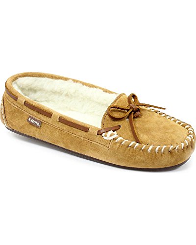 Studio : Lamo Publisher : Lamo Binding : Apparel Product Description Slip in to extreme comfort at your leisure with the Lamo Womens Britain Moc Slip-On Slipper - Chestnut. These slipper's pure suede moccasin with faux sheepskin lining provides all the coziness you need to keep your feet warm indoor and outdoors. The beautiful chestnut suede will nicely complement most styles as this timeless style still suites today's trends. ? Flexible TPR soles make this durable slipper set suitable for indoor or outdoor wear, and the cushioned foam insole provides support and deep-tissue comfort. These slippers are available in women's sizes only (6-11). ? About LAMO Sheepskin, Inc. Established in 1955, LAMO Sheepskin, Inc. offers a wide range of sheepskin products in four main categories: footwear, auto products, accessories, and home decor. LAMO products are carefully crafted from high-quality Australian sheepskins and processed through production procedures using German chemicals and European processing techniques. Their own quality insured system guarantees a high standard for their products. In addition, their products and outstanding service have become synonymous with their name. LAMO has established business throughout the world, and they are dedicated to providing customers what they want and expect. Classic chestnut color in women's sizes only. Pure suede moccasin with faux sheepskin lining. Flexible, durable TPR soles for indoor/outdoor wear. Women's sizes 6-11 available when in stock. Adjustable, contrast leather lacing. 0