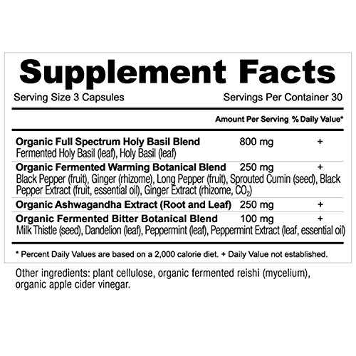 -. Title : Ancient Apothecary Fermented Holy Basil Supplement, 90 Capsules - Infused with Organic Essential Oils, Ashwagandha Extract and Digestive Bitters