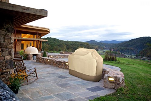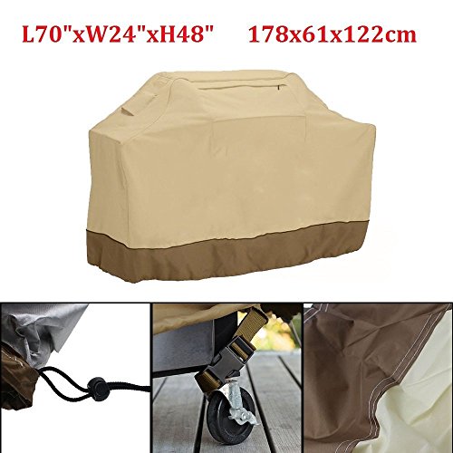 -. Feature : Heavy-duty protective grill cover, Measures: 58x24x48 Inches / The thickest fabric,flame resistant,weather resistant,and rip resistant gas grill cover available,accomodate Weber, Holland, Vermont Castings brand grills. / Convenient large zippered storage pockets for grill accessories can keep everything dry and safe from the weather. / Padded handles; helpful air vents; double stitched seams; and drawstring closure to keep it secure on the grill. / Extremely easy to clean, you can hose it down with water and let it dry in the sun.