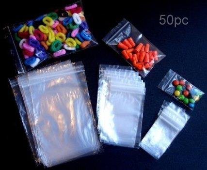 - Pack of 50 Assorted Size Clear Plastic Zipper storage bag. REUSABLE