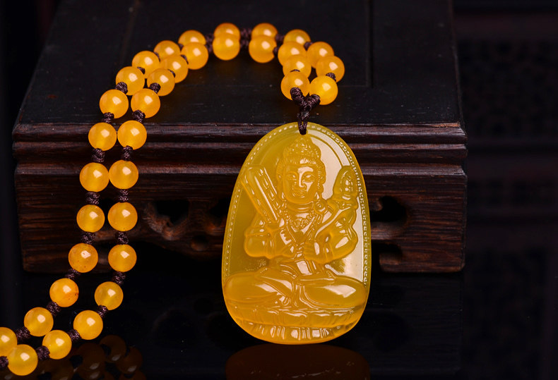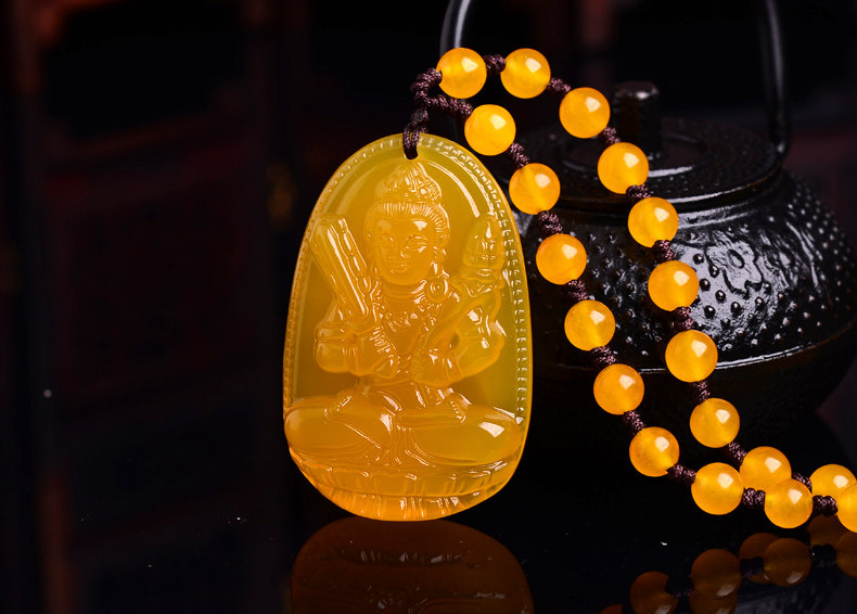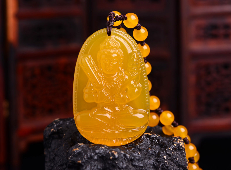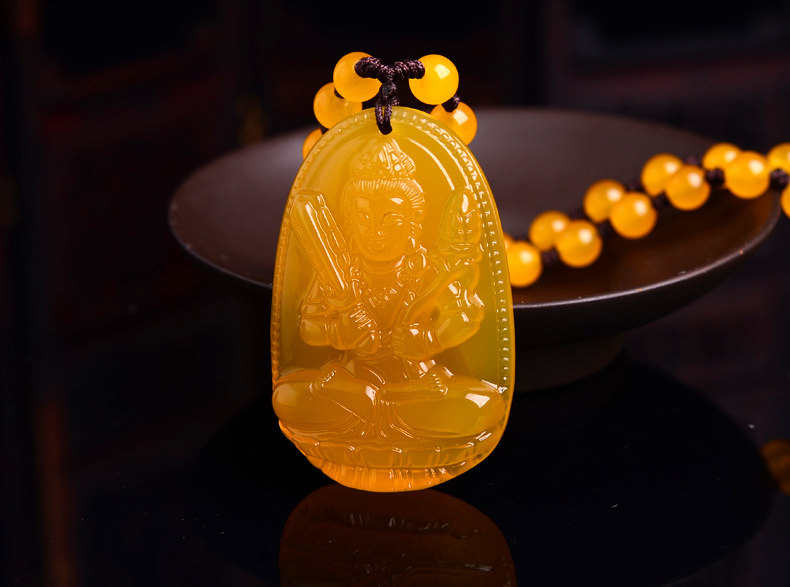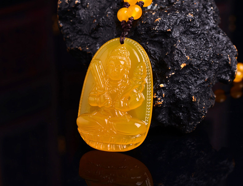 开光天然黄玉髓虚空藏菩萨吊坠 生肖属牛虎终生守护神 本命佛
