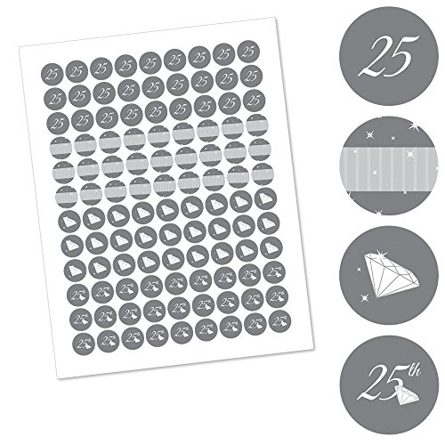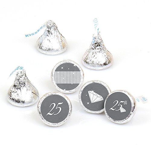 25th Anniversary - Party Round Candy Sticker Anniversary Favors - Labels Fit Hershey’s Kisses (1 sheet of 108)