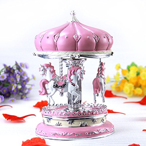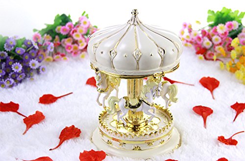 Polyresin music carousel with three horses,horses can rotate when music play,and play the Castle in the Sky Tune;