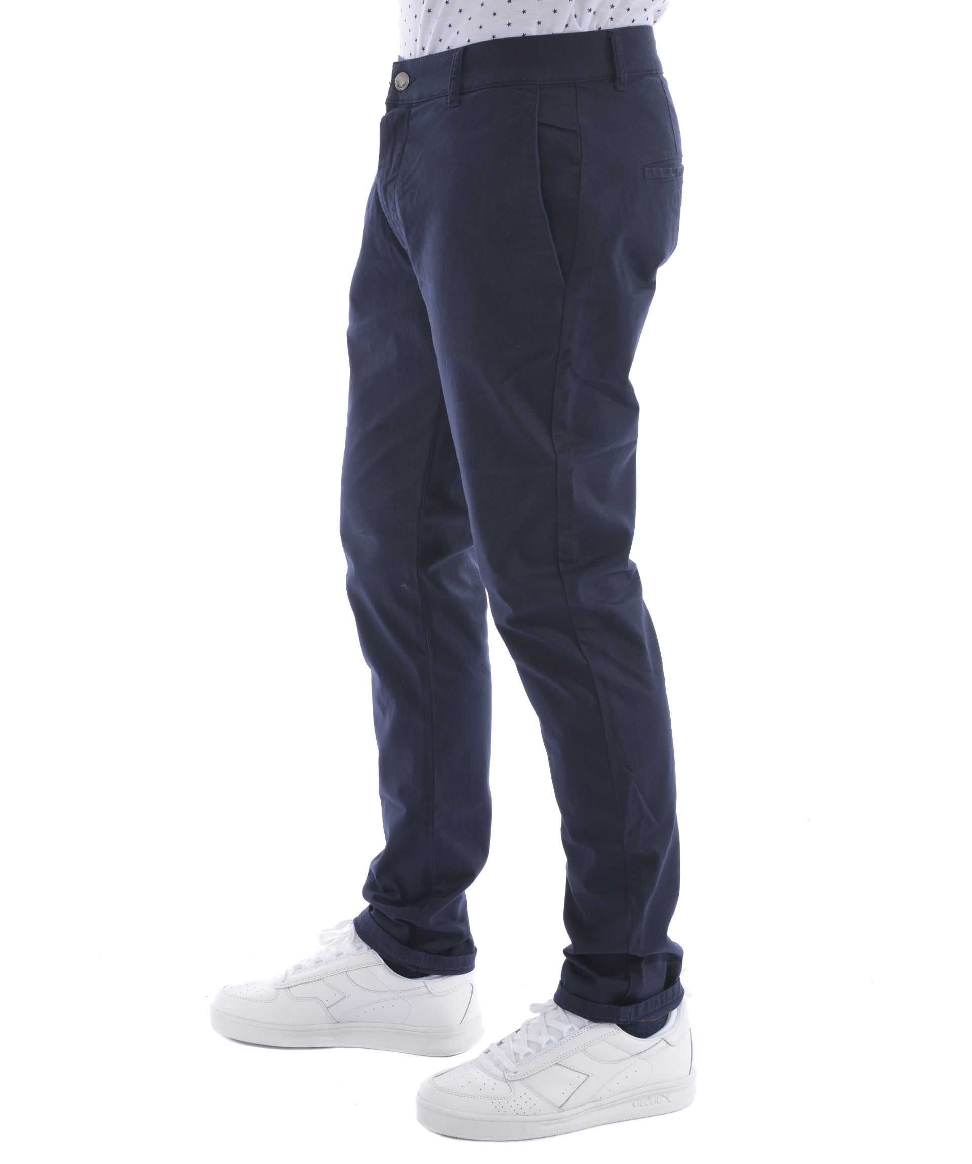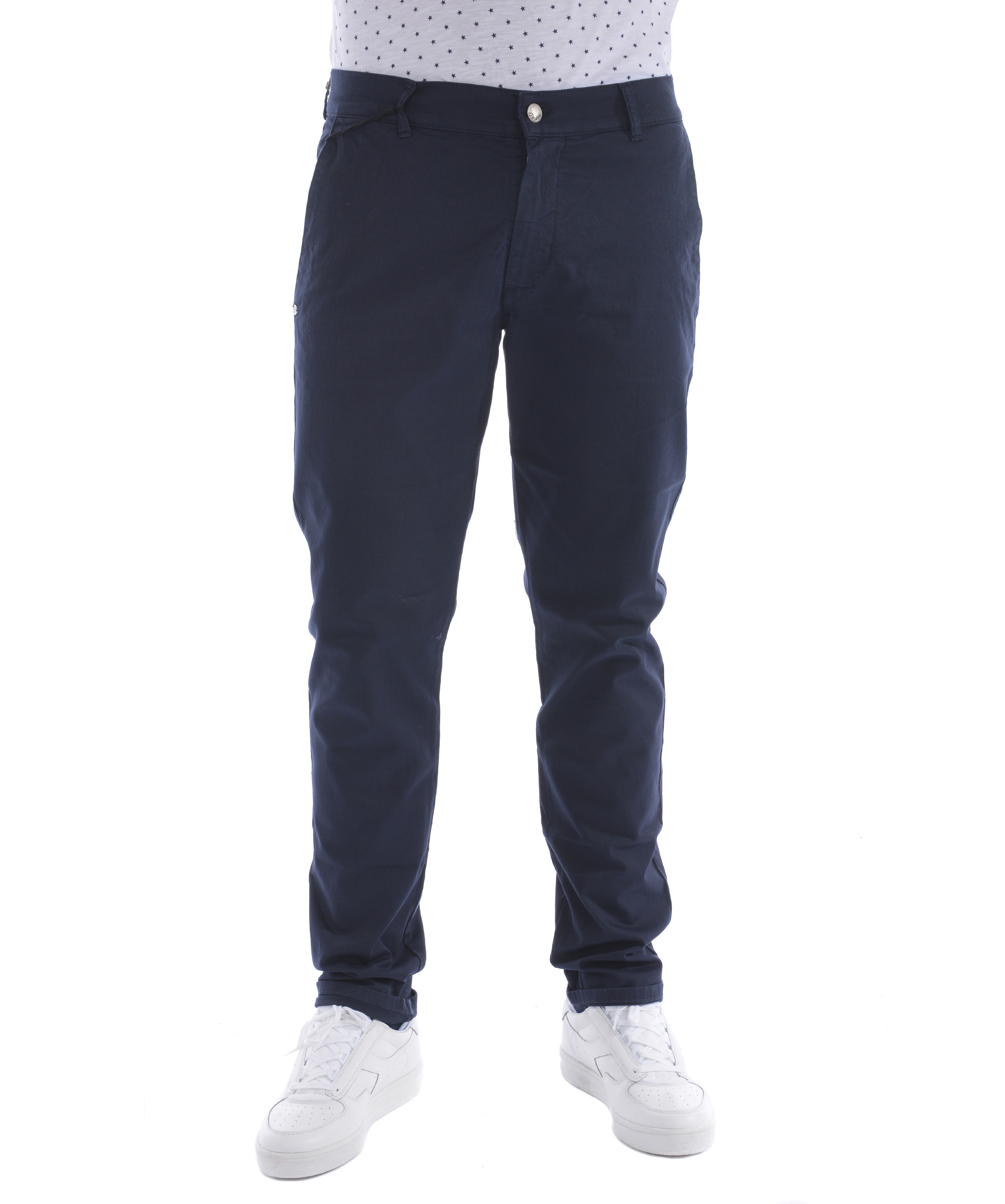 Slim Fit Trousers from Daniele Alessandrini: Dark Blue Slim Fit Trousers with button and zip fastening at front, waistband with belt loops, four pockets design and regular length.