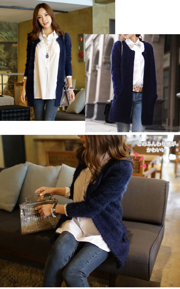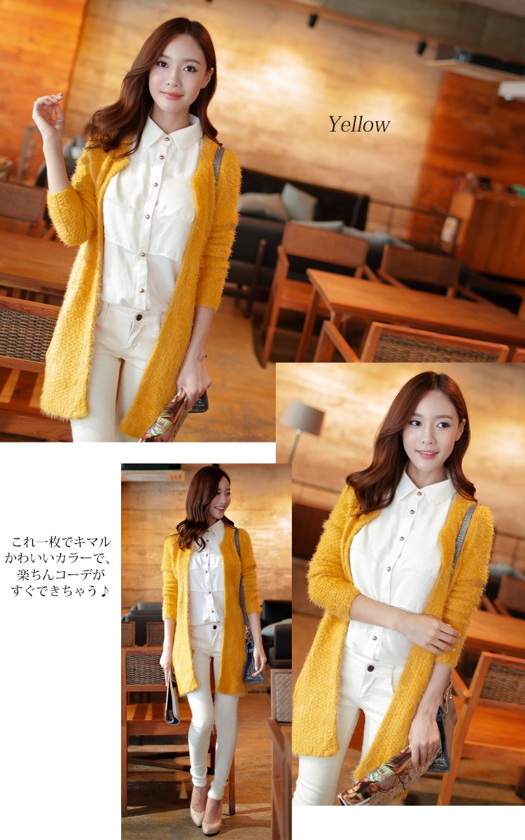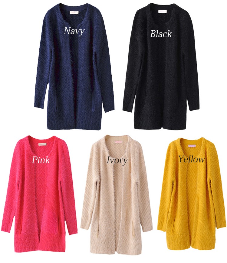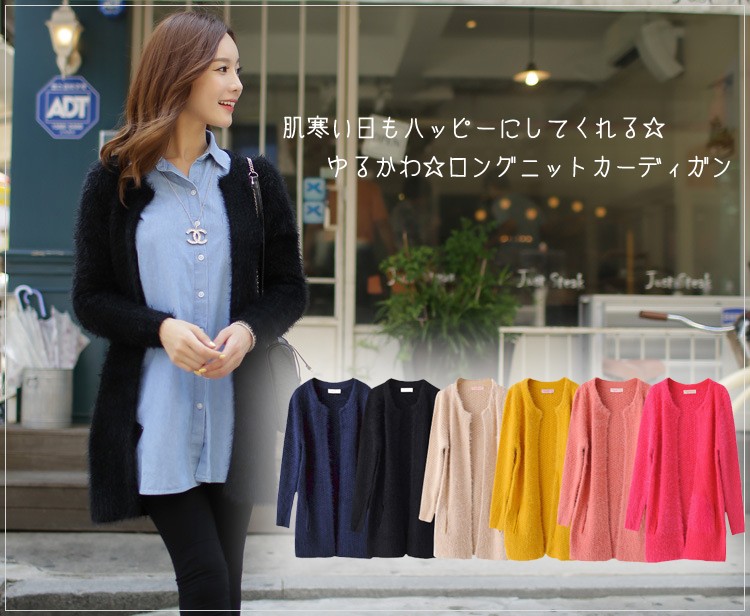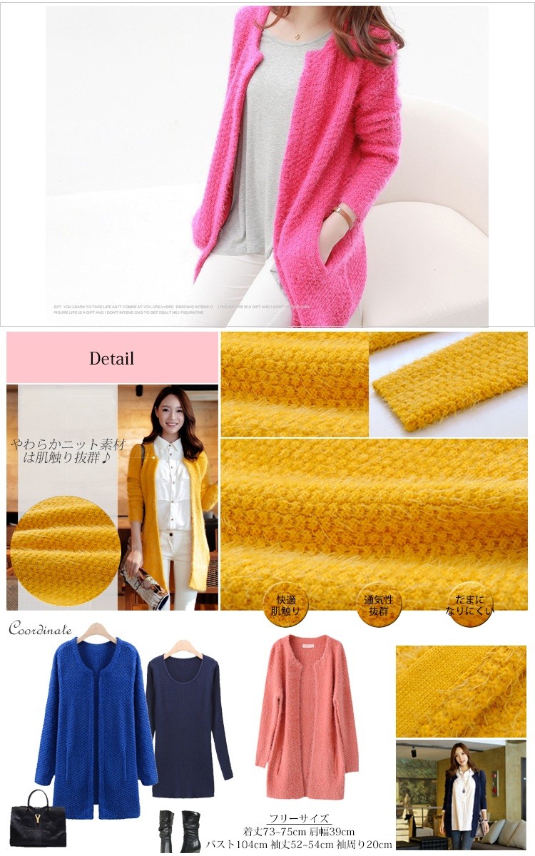 肌寒い日もハッピーにしてくれる☆ゆるかわ☆ロングニットカーディガン♪(ロイヤルブルー・ブラック・イエロー・ピンク・アイボリー)『合計4980円税別以上で送料無料』