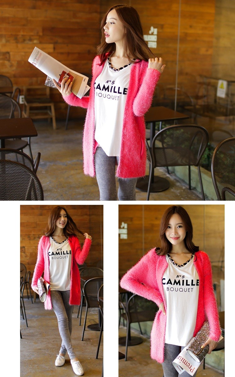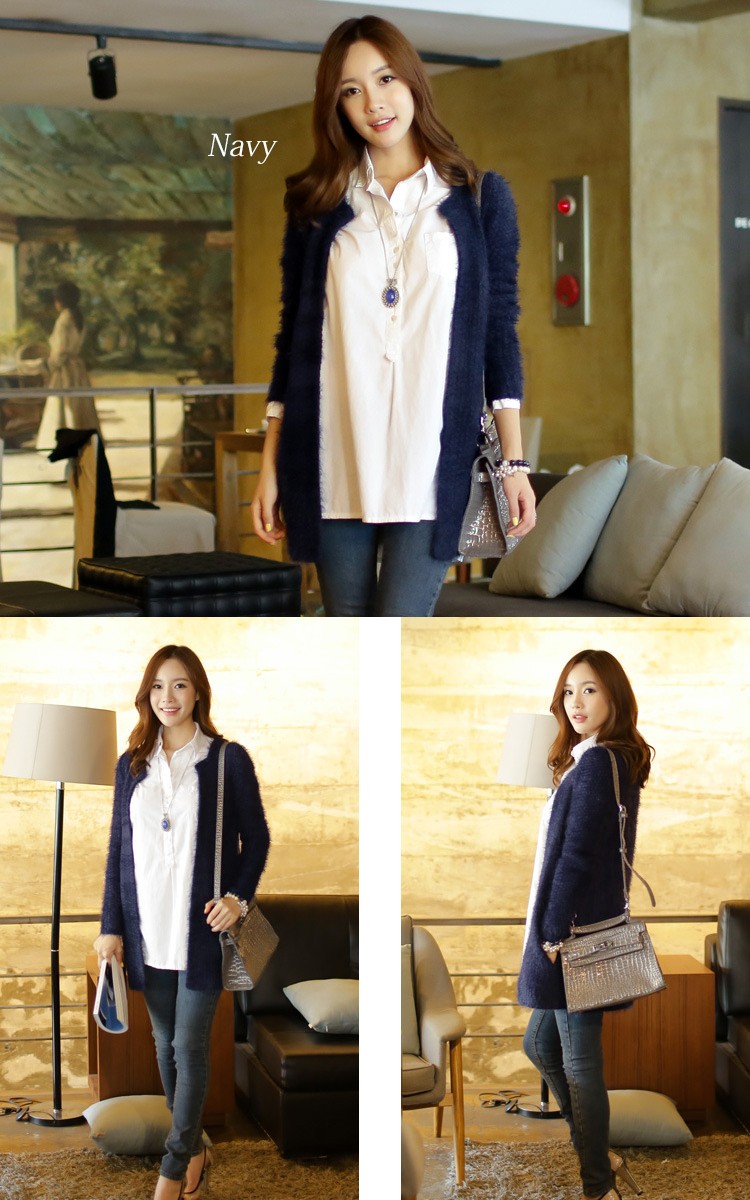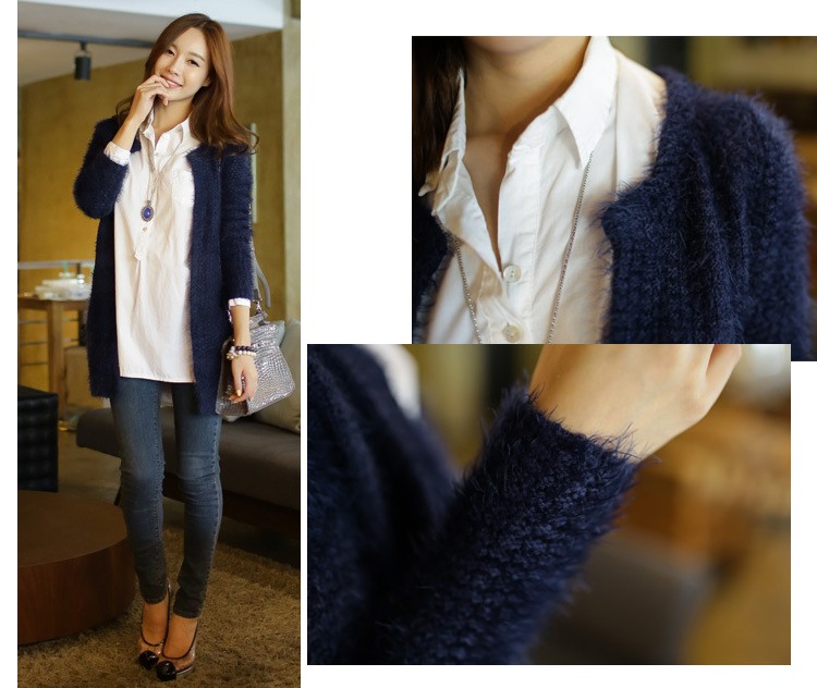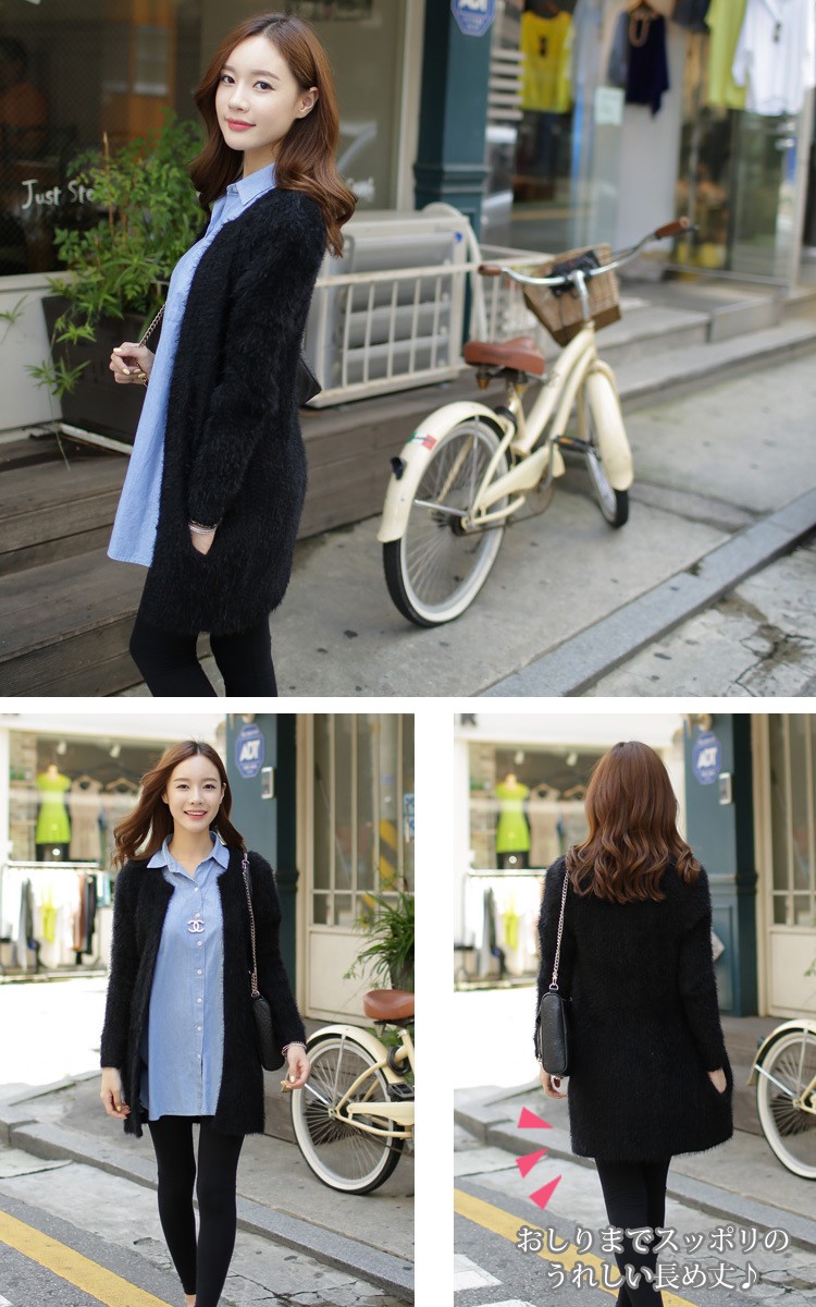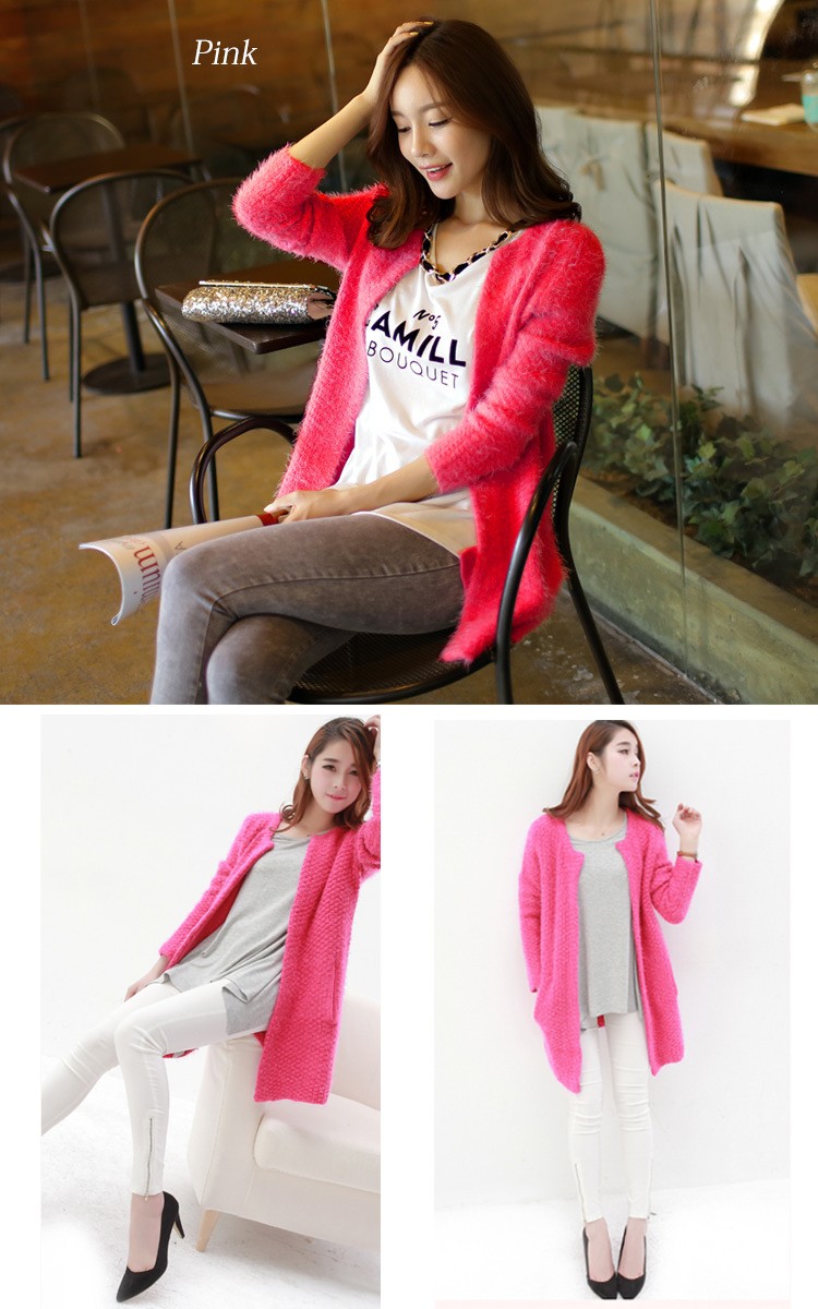 肌寒い日もハッピーにしてくれる☆ゆるかわ☆ロングニットカーディガン♪(ロイヤルブルー・ブラック・イエロー・ピンク・アイボリー)『合計4980円税別以上で送料無料』