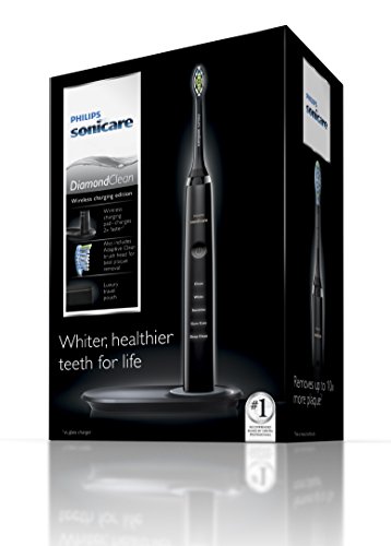 Everybody loves a healthy, bright smile. Featuring patented Sonic technology, 5 brushing modes and advanced brush head technology, Philips Sonicare Diamond Clean Qi Enabled Rechargeable toothbrush offers Philips Sonicare' s best whitening system and superior plaque removal, while reducing the clutter on your countertop. Choose from Clean, White, Deep Clean, Gum Care or Sensitive modes for a custom cleaning experience. Proven to naturally whiten teeth in just one week, Diamond Clean will also gently remove coffee, tea, tobacco and red wine stains. With the new Deep Clean mode and Adaptive Clean brush head, Philips Sonicare Diamond Clean goes beyond traditional cleaning to deliver up to 10x more plaque removal vs. a manual toothbrush. We also feature one of Philips Sonicare' s newest advancement, the Qi enabled charging pad. This charging pad allows you to charge your toothbrush up to 2x faster and reduce countertop clutter. Also features Quad pacer and Smart timer to encourage attentive brushing of each quadrant of the mouth and reinforce the recommended brushing time of at least 2 minutes. Its travel case allows you to take your toothbrush on the go with ease. Truly a new breath through in the industry from the most recommended power toothbrush brand.Feature