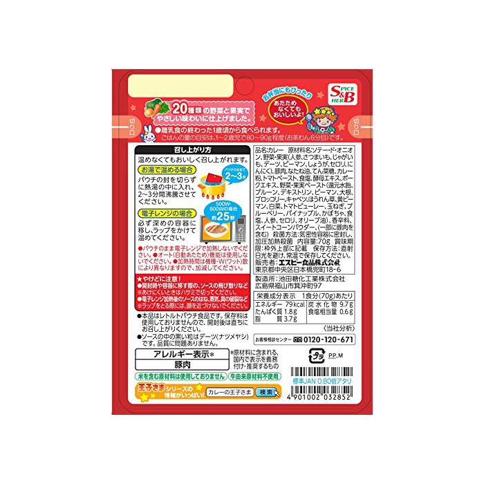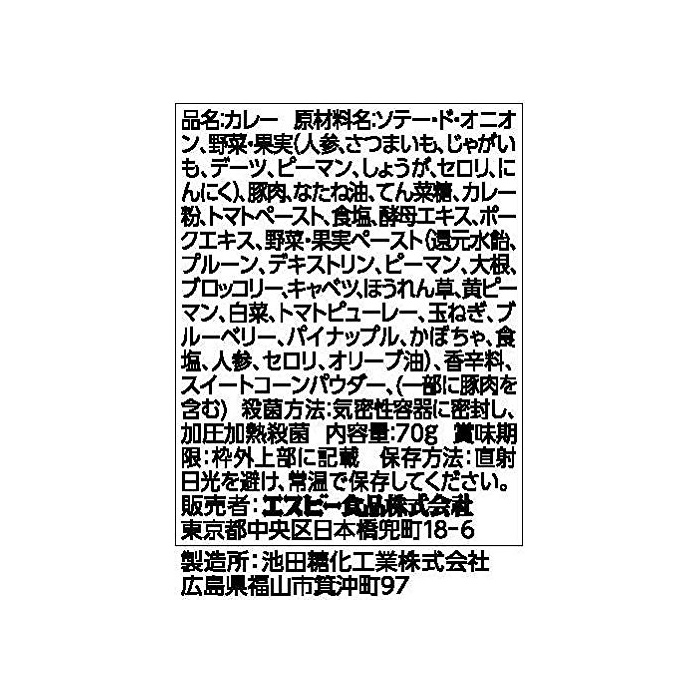 원재료:야채 과실(옥파,(당근)인삼,감자,데이《즈》,피망,샐러리,하 # 것이지만,마늘,Pull《―》,무우,브로콜리,양배추,배추,시금치,블루베리,파인애플,호박)고, 돼지고기,고구마 flake,이군요 유,고지 않겠 채당,카레분,토마토 Paste,식염,효모 엑기스,포크 엑기스,향신료,환원 수 엿,덱스트린,토마토 퓌레《―》,올리브 오일