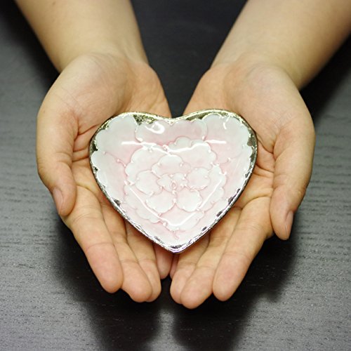 송화당 아리타산 도자기 핑크 모란(목단피) 소 플라티나(platina) 하트 작은 접시 10cm 문산요 buz0567
