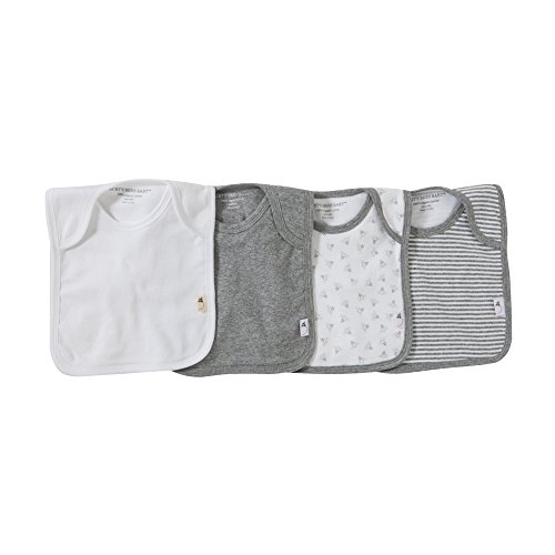 Burt's Bees Baby - Set of 4 Bee Essentials Lap Shoulder Bibs, 100% Organic Cotton, Heather Grey Variety