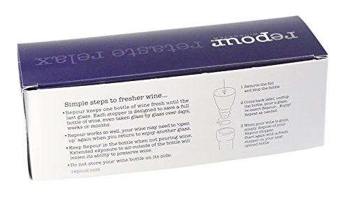Studio : Repour Publisher : Repour Product Description The Repour Wine Saver 10-Pack offers a smart, effective, and affordable way for you to save your wine. The 10-pack fits efficiently into kitchen/bar drawers for easy access and use. It's also the perfect hostess gift size. Repour's patent pending technology utilizes oxygen-absorption to eliminate 100% of oxygen in your favorite bottle of opened wine, keeping it fresh for days, weeks, or months! 0