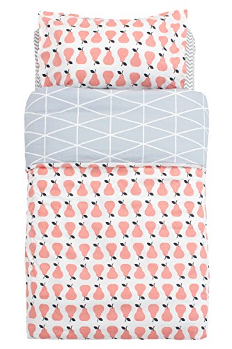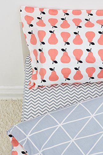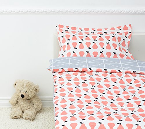 Size: Fitted sheet: 70*130 cm, Top sheet/ duvet cover: 110*130*25 cm, Pillow case: 40*60 cm The set fits standard Cribs and Toddler Beds sold in IKEA, Target, etc, also great on irregular sized mattresses.
