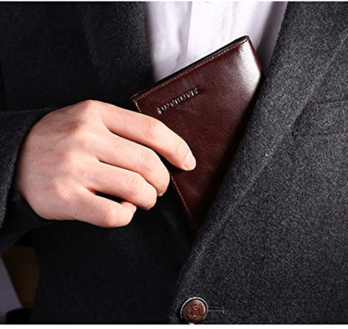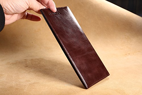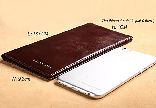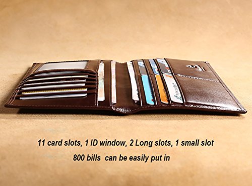 -. Feature : Material: Genuine Cowhide leather after waxing process imported from Italy, soft and comfortable. The lining was made of polyester, smooth and durable / Dimensions: L 7.28'' x W 3.62'' x H 0.39'', mini and fit to use / Capacity: 11 card slots,1 ID window, 2 long slots, 1 small slot, 800 bills can be easily put in / As genuine cowhide leather wallet, it will become brighter and brighter over time / Satisfaction Guarantee: If you aren't completely happy with our leather wallet, simply return it within 30 days for a full, no questions asked refund